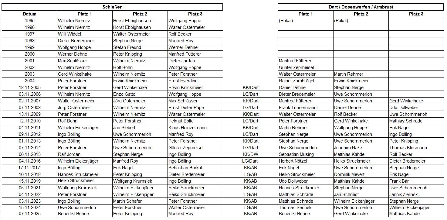 November-Schießen und Dart / Dosenwerfen / Armbrust